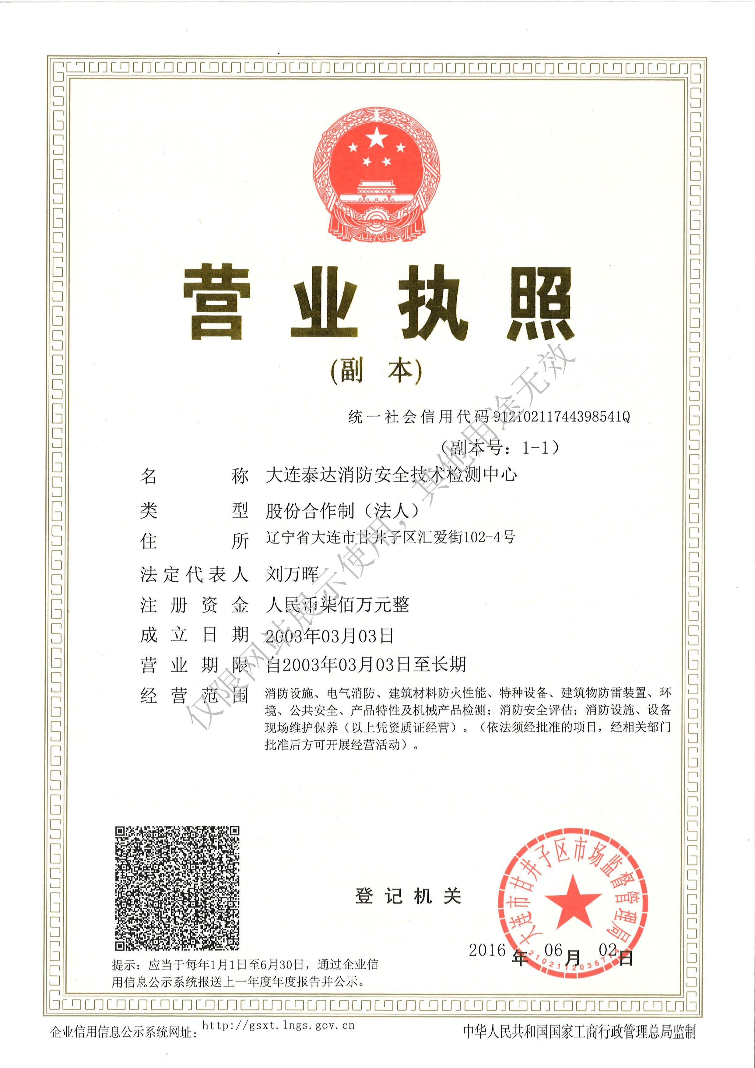 · 大連泰達消防安全技術(shù)檢測中心成立于2003年3月,是一家專注從事消防設(shè)施維護保養(yǎng)、消防設(shè)施檢測、電氣防火檢測、消防安全評估、雷電防護裝置檢測、防火涂料檢測、消防技術(shù)咨詢與消防培訓(xùn)等專業(yè)消防技術(shù)服務(wù)的企業(yè)。